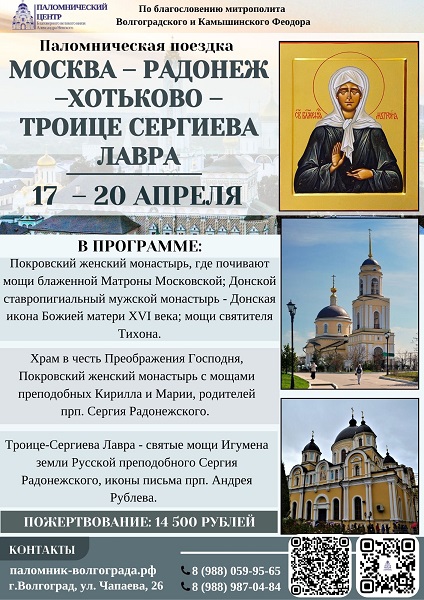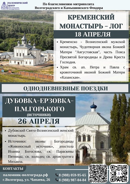 Паломнический центр Волгоградской епархии приглашает совершить паломничество по весенним маршрутам в пасхальные дни апреля.