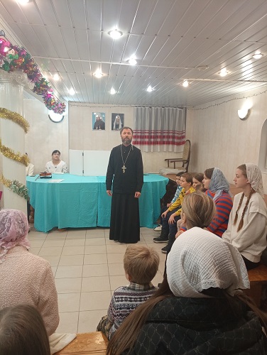 Дети воскресной школы вместе с о. Владимиром исполнили тропарь Рождества